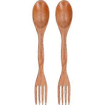 2 In 1 Fork And Spoon Combo Ultra Lightweight Camping Utensil Kitchen Utensils Reusable Wooden Spork For Backpacking Hiking Outdoorswood Color2pack