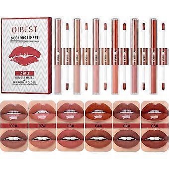 2-in-1 Lipstick Set, 6 Pcs Hydrating Lip Gloss and Matte Lipstick Set Long-Lasting and Waterproof Lips Makeup Kits