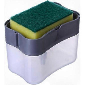 2-in-1 Plastic Soap Dispenser with Hand Pump and Sponge Holder for Bathroom or Kitchen.