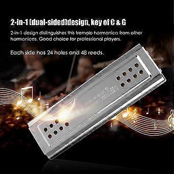 2-in-1 Tremolo Harmonica Mouth Organ Dural Key of C&G 24 Double Holes with 48 Reeds Free Reed Wind Instrument with Padded Box Cleaning Cloth