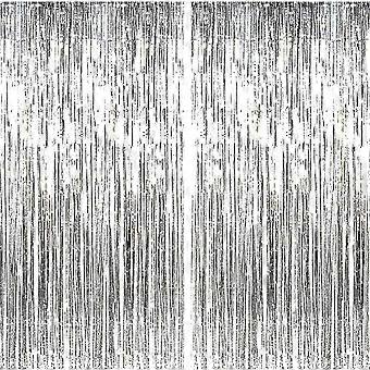2 Metallic Tinsel Curtains, Foil Fringe Curtains, Silver Party Photo Backdrop, Birthday Decoration
