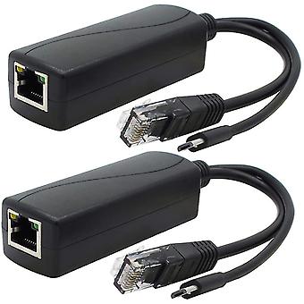 2-pack Gigabit Poe Splitter, 48v To 5v 2.4a Micro Usb Ethernet Adapter, Works With Raspberry Pi 3b+, Ip Camera And More