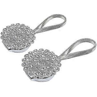 2 Pack Magnetic Curtain Tiebacks, Sparkling Crystal Flower Curtain Tieback
