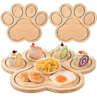 2 Pack Paw Shaped Bamboo Cutting Board Set, Wooden Serving Tray for Cheese Charcuterie, 15.16x11.61"