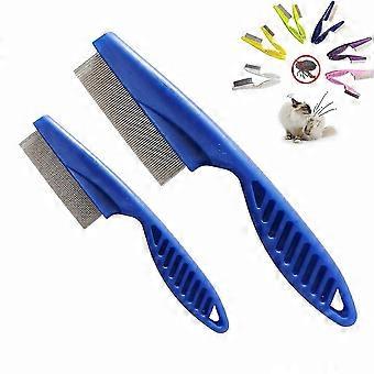 2-Pack Pet Grooming Comb for Dogs & Cats, Multi-Use Flea and Hair Remover with Tear Stain Tool