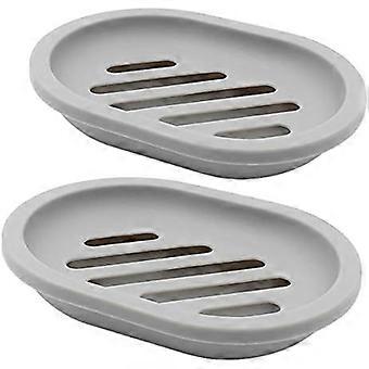 2-Pack Soap Dish with Drain, Soap Holder, Soap Saver, Easy Cleaning, Dry, Stop Mushy Soap (Gray)
