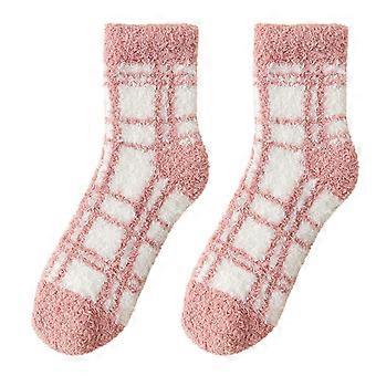 2 Pairs of Soft Women's Plaid Plush Winter Sleep Socks, Short Home Socks and Bed Socks