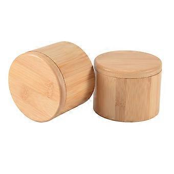 2 Pcs Bamboo Salt & Spice Storage Box with Magnetic Swivel Lid Round