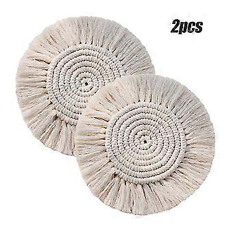2 Pcs Boho-style Handmade Macrame Coasters Made Of Cotton