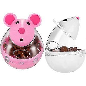 2 Pcs Cat Food Ball Dispenser Cat Treat Toy Feeder Toy for Interactive IQ Treat Training Mouse shape Tumbler (pink ang white)