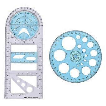 2 Pcs Multifunctional Geometric Ruler Plastic Drawing Tool Drafting Templates Clear Graphic Design