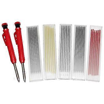 2 Pcs Solid Carpenter Pencil for Construction with 31 Refill Leads Built-in Sharpener, Long Nosed M