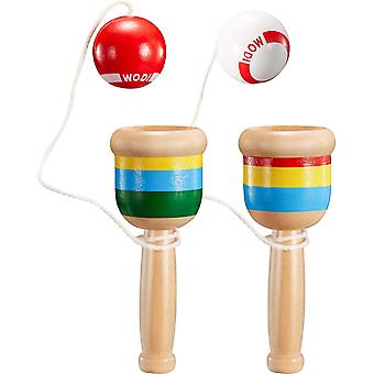 2-piece Jack Games Paddle Ball String Cup And Ball Games Mini Wood Catch Cup, Hand-eye Coordinate Ball Catch Cup