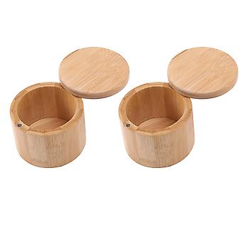 2 Pieces Bamboo Salt and Spice Storage Box with Magnetic Swivel Lid Round Bamboo Pepper Box Bamboo