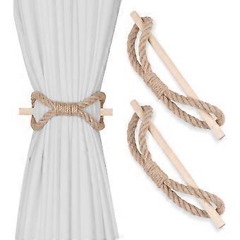(2 Pieces) Curtain Tie Set Hemp Cord Wooden Curtain Ties