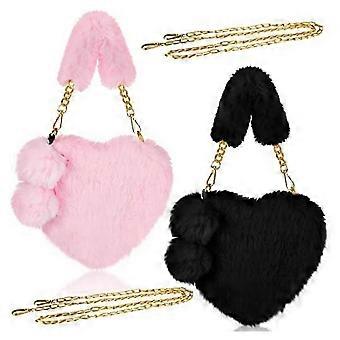 2 Pieces Valentine's Day Heart Shaped Purse Shoulder Bag Soft Plush Handbags