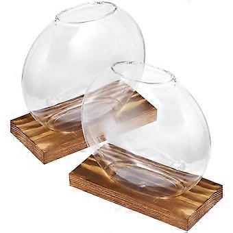 2 Sets of Creative Glass Vase with Base for Hydroponic Plants Multi Scene Decor Storage 4.5 Inches