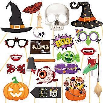 20 Pcs Halloween Handheld Prop Party Photo Prop Spooky Creepy Different Shapes Fangs Skull Witch Hat Card With Sticks
