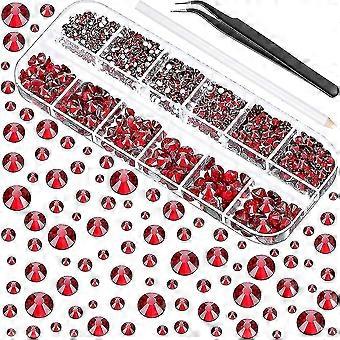 2000 Pieces Flat Back Gems Round Crystal Rhinestones 6 Sizes (1.5-6 Mm)
