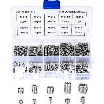 200pcs Stainless Steel Grub Screws, M3 M4 M5 M6 M8 Machine Screws, Assortment Punch Screw Fixing Kit