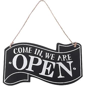 2023 Wooden Open And Closed Two Sided Sign With Rope For Hanging Vintage Business Sign (black)