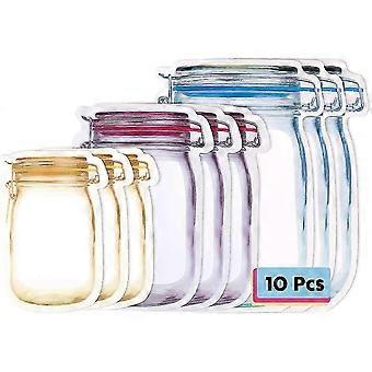 2024 10 Pieces Stylish Storage Bag, Reusable Portable Mason Jar Zipper Bags, Waterproof Ziplock Sealed Food