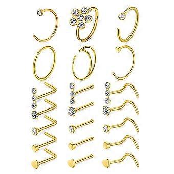 20g Stainless Steel Nose Rings Hoop L Shape Nose Studs Nose Screw Bone Gold for Women Men, Nose Stud Set Piercing Nose Ring C Shape U Shape Combinatio