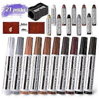 21 pcs Furniture Touch Up Pens Multi-Purpose Felt Marker Furniture Repair Kit for Stain, Scratches, Wood Floors, Tables with Pencil Sharpener