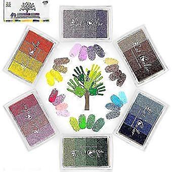 24 Colors Ink Pad Set, Fingerprint Ink Pad Nontoxic Washable Ink St...