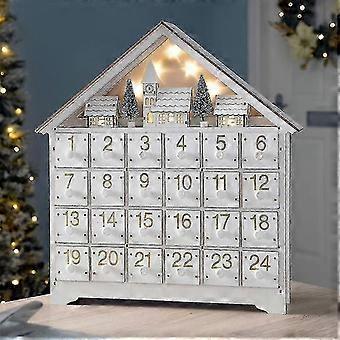 24 Days White Wooden Led Christmas Advent Calendar Storage Drawer