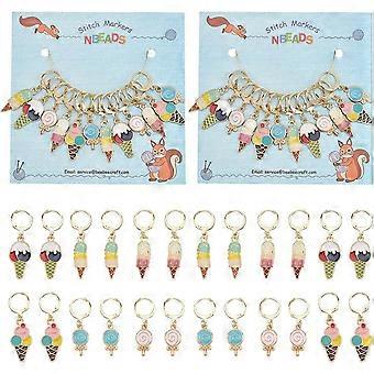 24 Pcs Boba Lollipop Ice Cream Stitch Markers 6 Styles Alloy Enamel Crochet Charms Removable Locking Stitch Marker with 304 Stainless Steel Clasp for