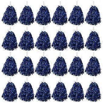 24Pcs Cheerleading Pom Poms Metallic Foil Cheer Pom Poms with Plastic Handle for Adults Kids Cheerleaders Blue