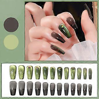 24pcs/box Artificial Nails Forest Green Cat Eye Wearing Nails Press-on Nails