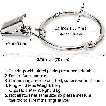 25 Pieces Curtain Rings With Clips, Decorative Metal Window Curtain Drapes Clips With Strong Clip, Rustproof, Easy Open And Close, 38mm Inner Diameter