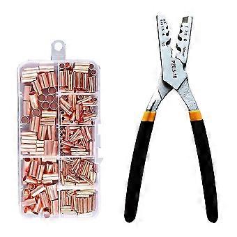 250pcs GT Copper Connecting Pipe Wire Joint Small Copper Tube Terminal Cable Lug Bootlace Ferrule Kit W/Crimping Pliers