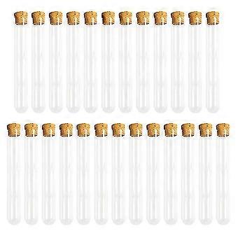 25pcs Clear Plastic Test Tubes With Cork Stoppers For Scientific Experiments, Party, Storage