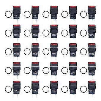 25Pcs Push Button Switch Momentary Self Locking 16mm Square with Light Set Kit 12VRed