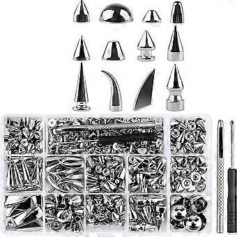 270Set Spikes and Studs,Mixed Shape Punk Spike Rivets Metallic Cone Screw Back Studs with Install T