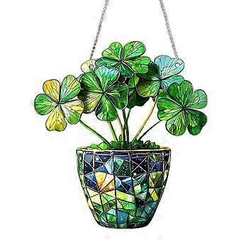2D Flat Clover Ornament Stained Acrylic Window Suncatcher Monstera Leaf Hanging Ornament Greenery Gift for Nature Lovers