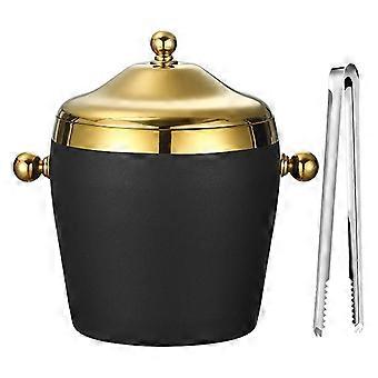 2L Stainless Steel Ice Cube Tray with Airtight Lid, Ice Tongs, Black