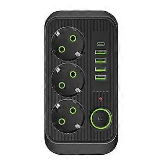 2meters Extension Cord with USB&Type C Power Socket EU Plug Black
