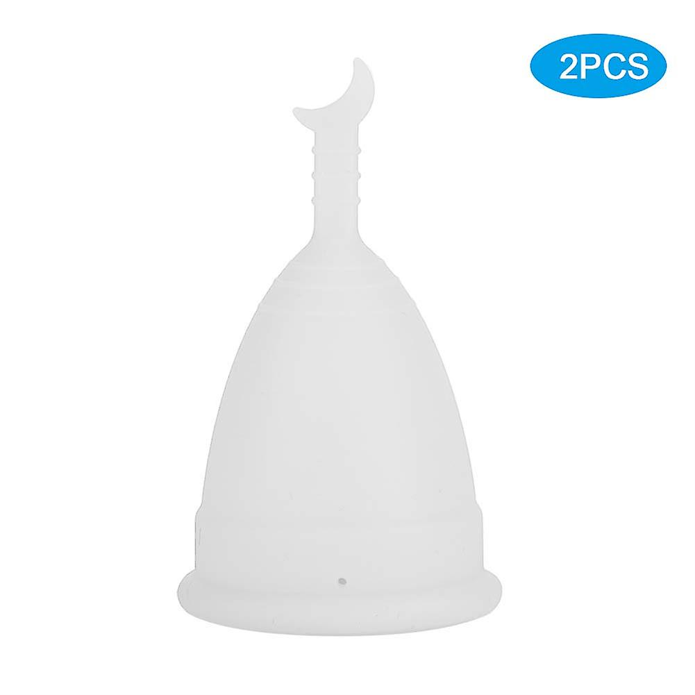 2Pcs Silicone Women Menstrual Cup Female Hygiene Cup Menstruation Period SuppliesMoon Shaped White L
