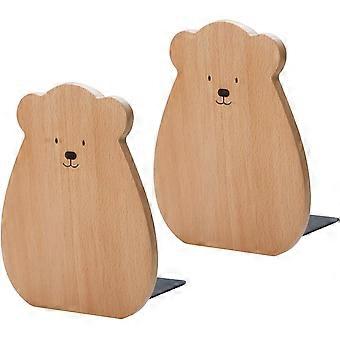 2PCS 12x15cm Bookends, Beech Bookends Holder for Shelves, Non-Slip Book Storage Rack, Book Shelf Support for Home, Office