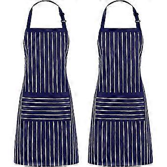 2pcs adjustable bib pinstripe apron with 2 pockets, neutral cooking kitchen apron sea blue