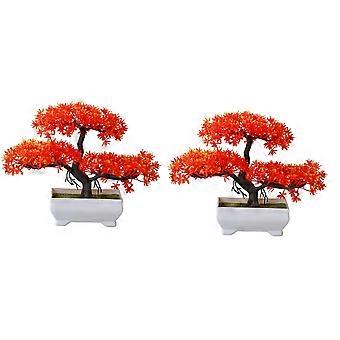 2Pcs Artificial Plant Bonsai Plastic Small Tree Pot,Evening Red