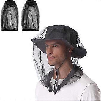 2pcs Black Mosquito Repellent Hat with Mosquito Net Face Net Anti Fly Mosquito Head Net for Beekeeping Fishing Outdoor Camping Good for Traveling