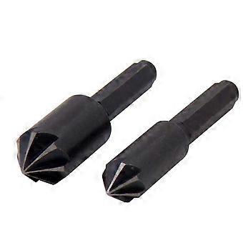2Pcs Carbon Steel Chamfer Hex Handle Countersink Boring Set Drill Bit Tools