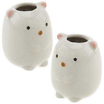 2pcs Ceramic Toothpick Holder & Toothbrush Stand, Cartoon Design Multifunctional Dispenser with Stable Base for Bathroom & Desktop Decor