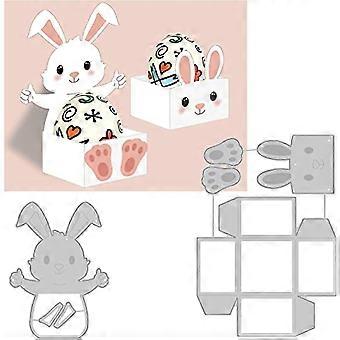 2Pcs Easter Themed Cutting Dies Stencils 3D Rabbit Shaped Box with Egg Pattern Carbon Steel Stencil Templates
