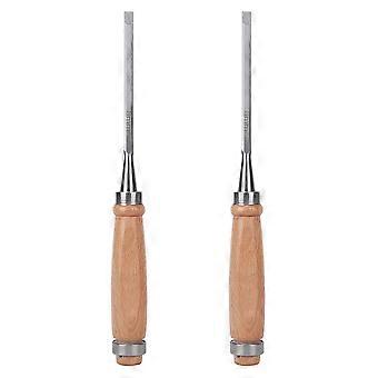 2PCs Flat Chisel Carpentry Tools Wooden Handle Durable Woodworking Accessory Cr V 6mm